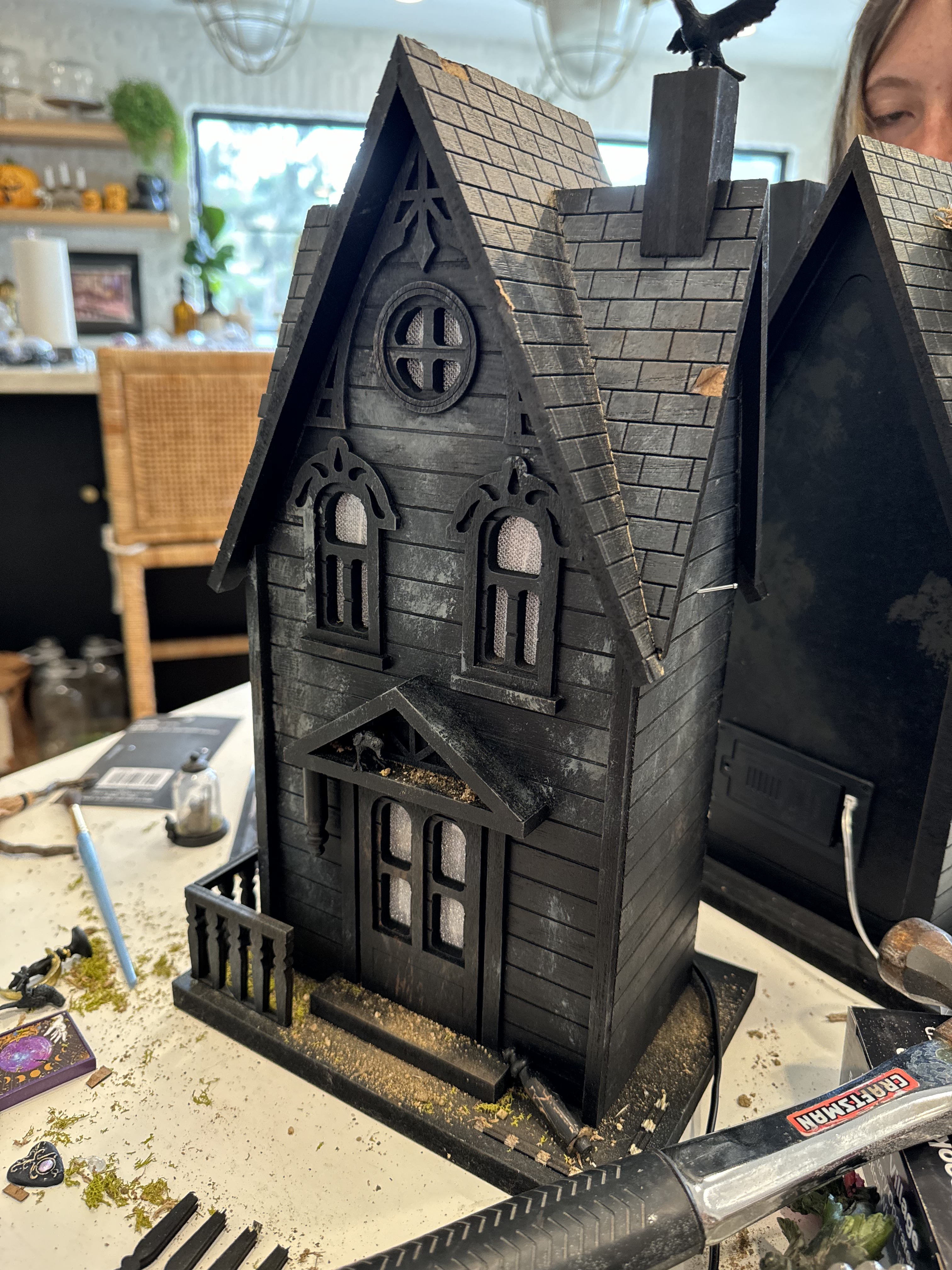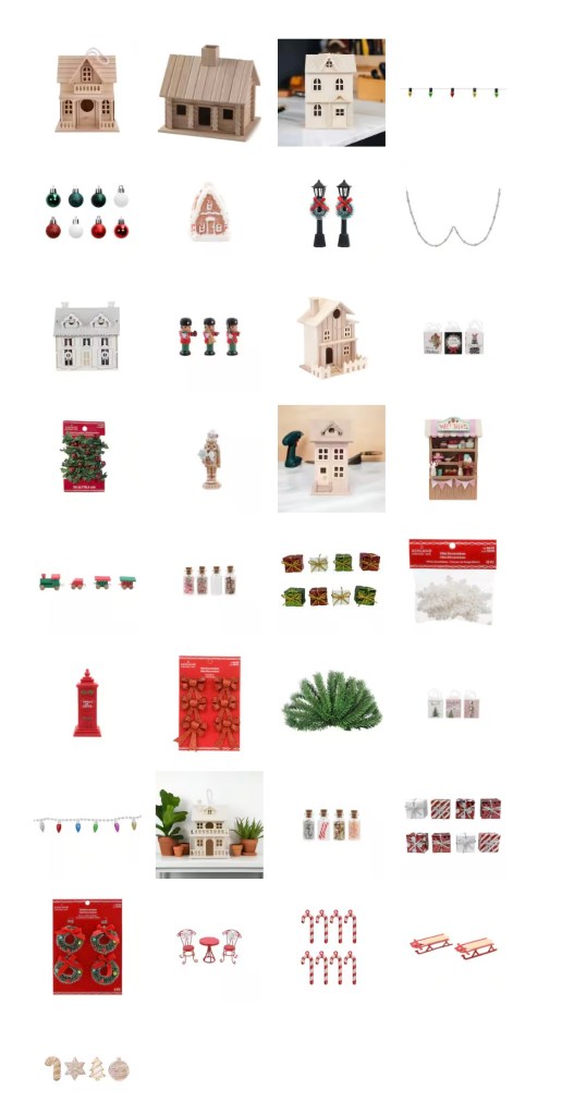 Every October, I head to Michaels and stock up on the wooden birdhouses—they’re always 50% off that time of year. Then I wait for the Ashland miniatures to hit their website (usually late October). These tiny figures are key! I order an absurd amount (no shame), all at 50% off too. We use a ton of them, and I always return what we don’t use.
