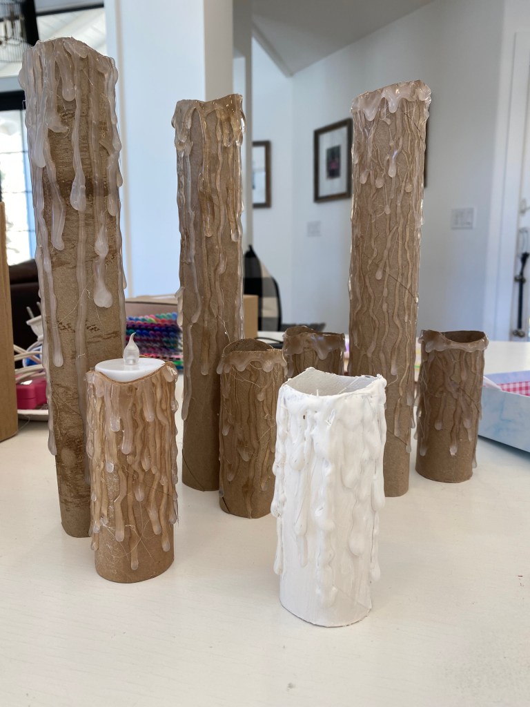 To make the floating candles, I started saving paper towel rolls months in advance. I also ordered a bulk box of hot glue sticks because I knew I was going to need a lot.